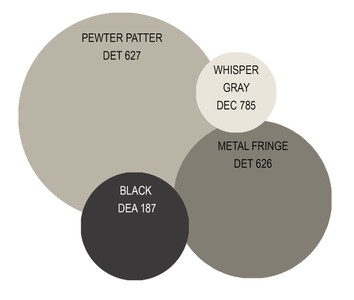 One of the most popular trends (2nd place)...well at least in my opinion, because this is the type of color I get asked about very often during my color consultations at work, next to grays which is the last trend featured in this post. A "graige" is a color blend of beige and grey, which can range from light to dark in tone as well as either hold more beige or grey in color. More often than not the "graige" is paired with a soft white or a darker "graige" tone to add a more prominent contrast on the exterior. Below are a few color schemes I have put together on my own time using some Dunn Edwards colors that incorporate this "graige" trend.