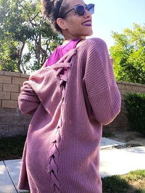 The rest of this post will show off another awesome fall find (also from Macy's), this dusty pink/mauve knit cardigan with a criss-cross feature down the back. Warm, comfy, and adorable...what more could you ask for in a fall sweater?!